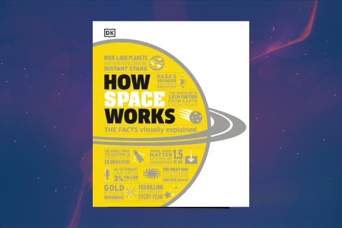 One of the most visually engaging space books for beginners, this illustrated encyclopedia breaks down astronomy through step-by-step graphics and jargon-free explanations. From the Solar System and the Milky Way to dark matter, cosmic rays, and black hole collisions, it makes complex space science accessible. Packed with clear visuals, bite-sized facts, and up-to-date discoveries, this space book is ideal for curious readers exploring the universe.